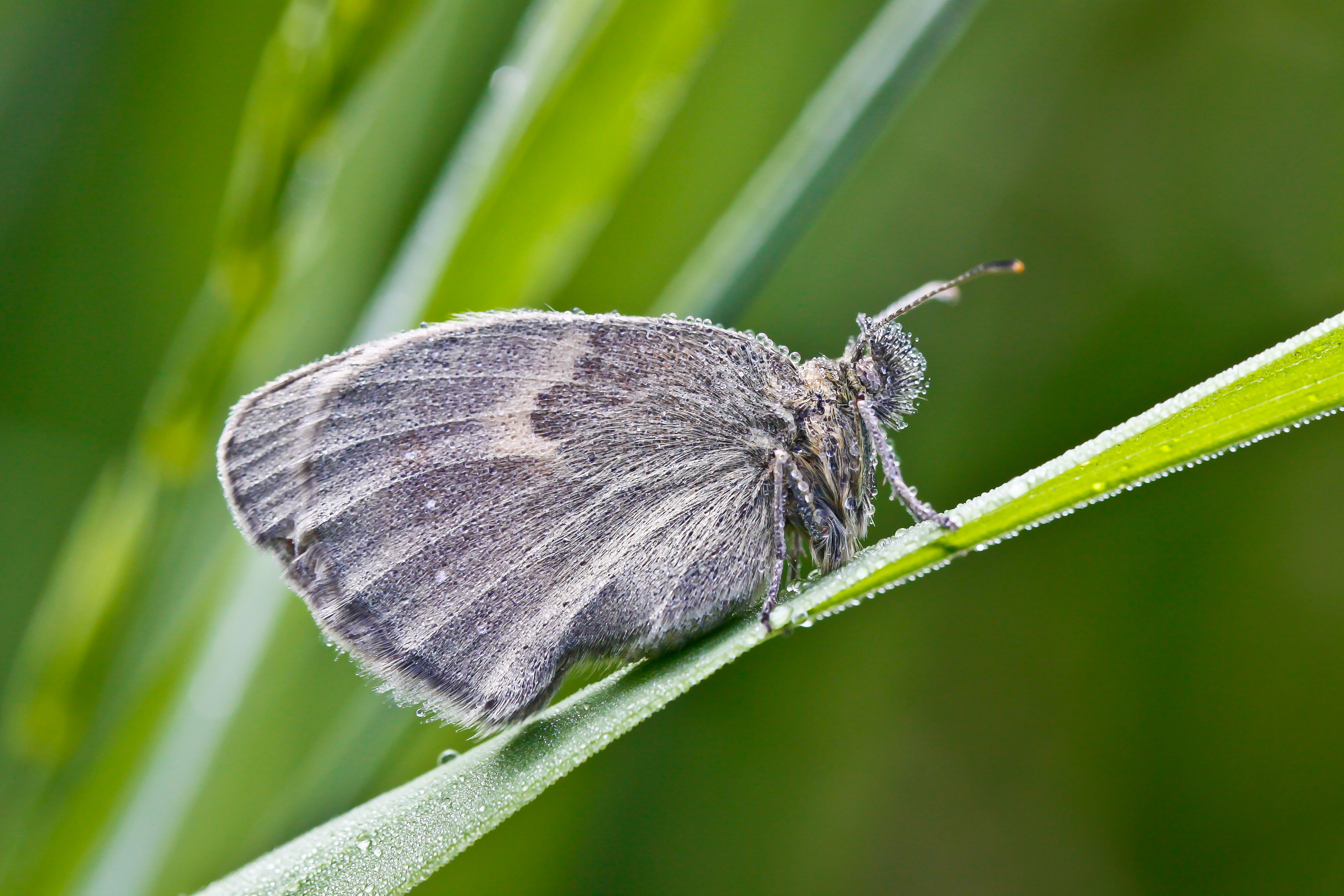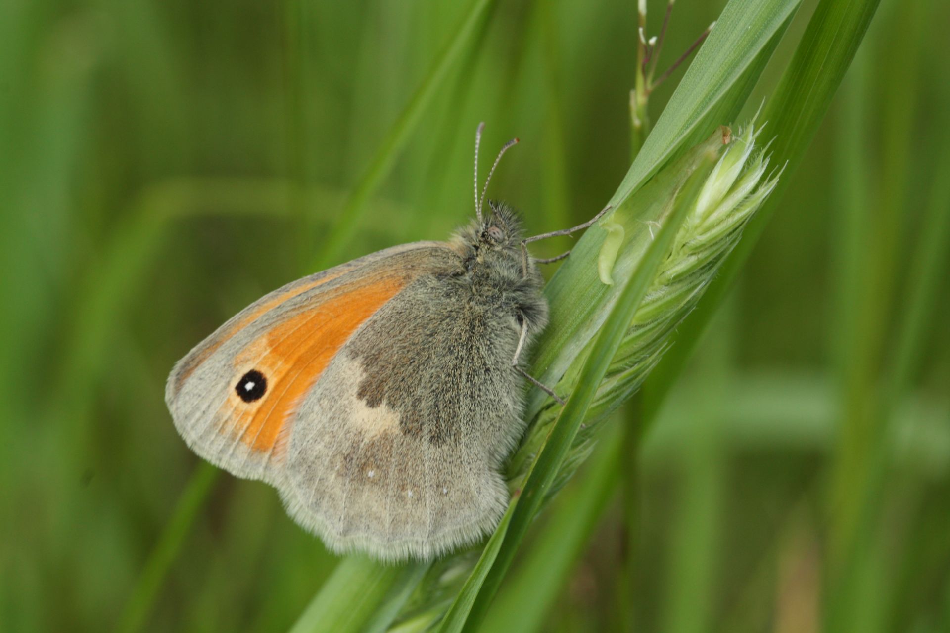 Le Fadet commun se pose toujours ailes relevées. Le dessous des ailes postérieures est presque uniformément gris avec une rangée de minuscules ocelles submarginaux clairs. Les ailes antérieures, d’un fauve terne, sont frappées d’un ocelle apical pupillé de blanc. Il n’y a aucun risque de confusion au repos, notamment avec le rare Fadet des tourbières, plus grand, même si la teinte générale en vol s’en rapproche. La deuxième génération fournit, dans les stations chaudes, des individus aux teintes grises plus claires, avec des nuances brun fauve, notamment chez les femelles. C’est une espèce de petite taille ne pouvant guère être confondue qu’avec le rare Fadet des tourbières et l’Iphis, et dont la taille le fait parfois passer inaperçu lorsqu'il y a beaucoup d'autres papillons.