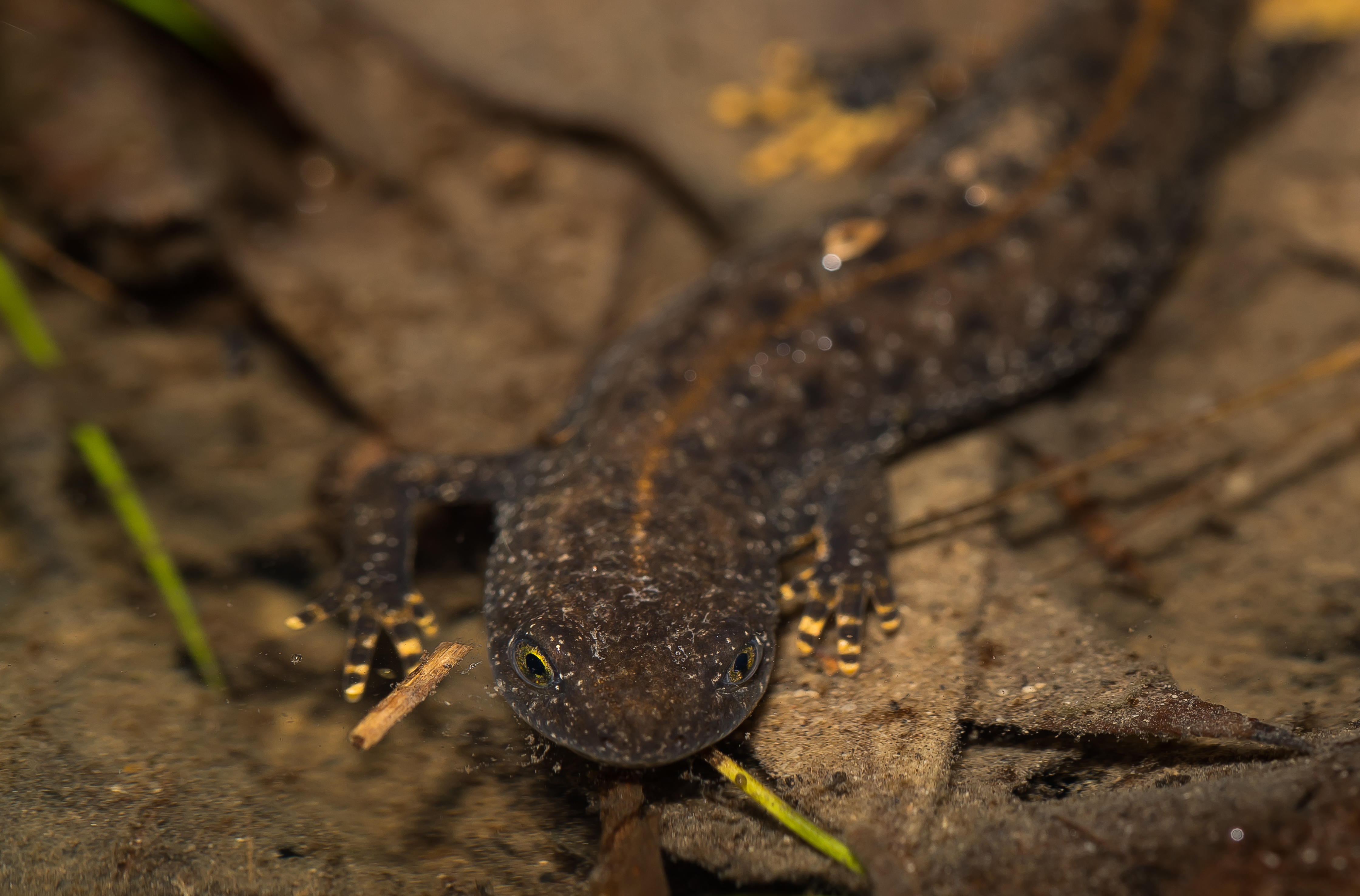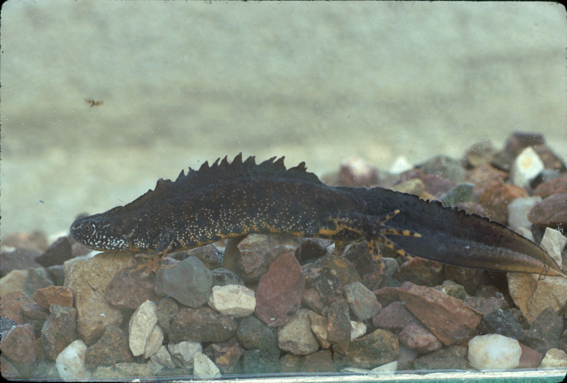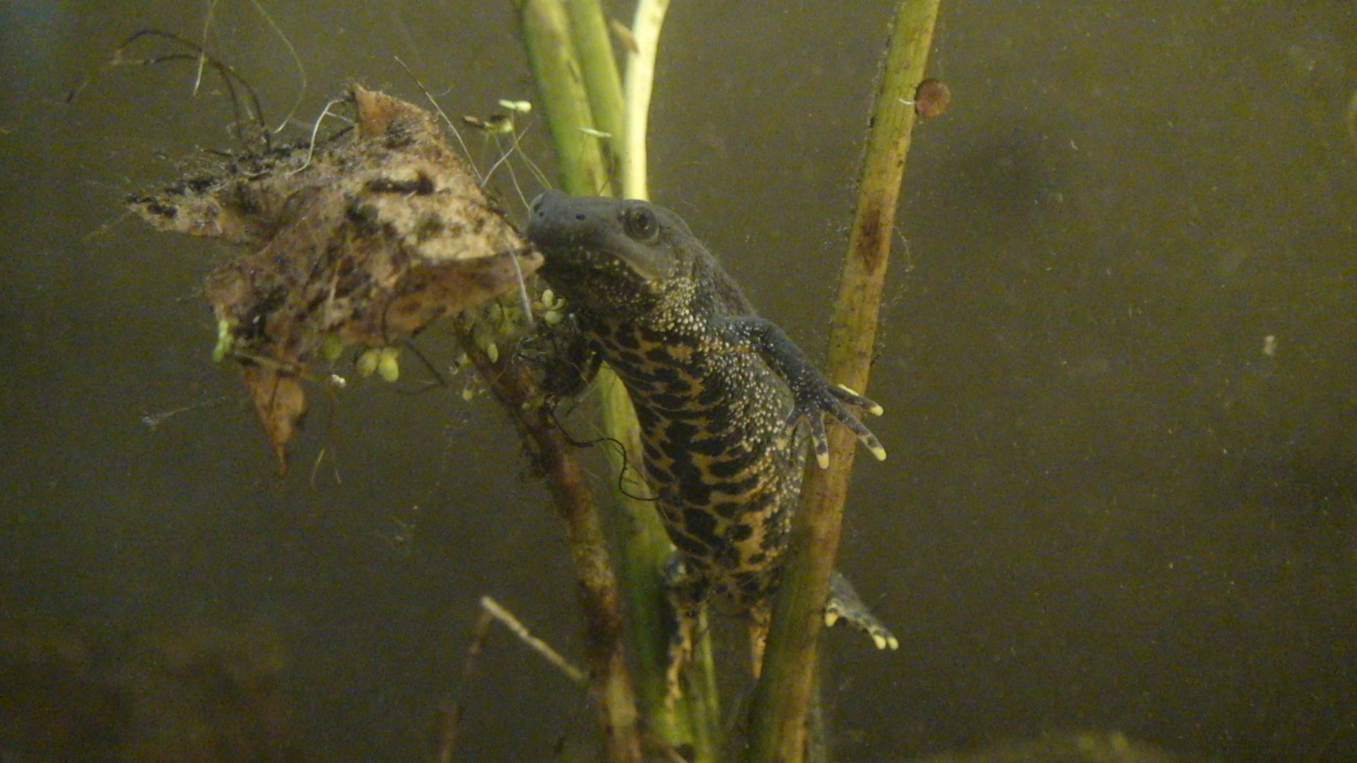C’est le plus gros et le plus impressionnant triton de Côte-d’Or, puisqu’il peut atteindre 18 centimètres de long. Hormis la grande taille des individus âgés, il est reconnaissable à son ventre jaune taché de noir. En période de reproduction, le mâle arbore une immense crête dentelée sur le dos lui donnant une allure de monstre préhistorique ! Les larves sont également très caractéristiques, avec d’immenses doigts tels des filaments.